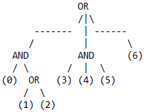 ((0) and ((1) or (2))) or ((3) and (4) and (5)) or (6)