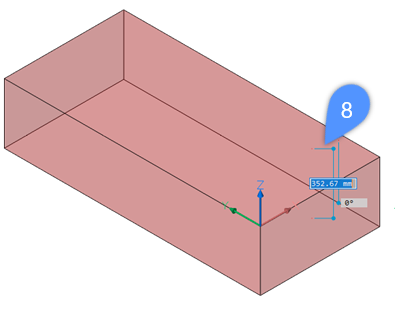 - Select the Extrude tool and move the cursor downward (8) to extrude your solid outline in the negative Z direction.