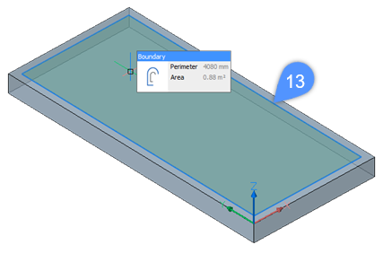 Note: The distance of the offset equals the width of the frame. - Hover over the inside boundary of the parallel offset (13) and select Extrude tool from the Quad.