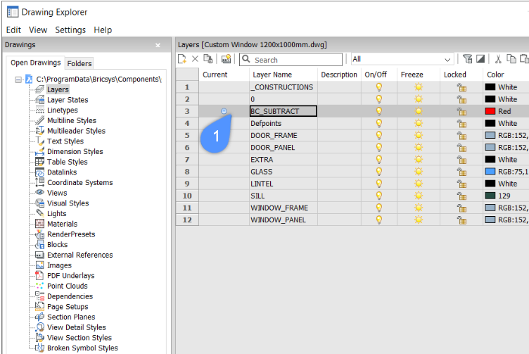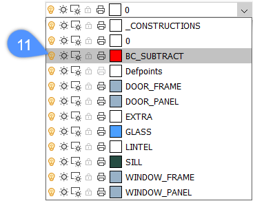 - Set the BC_SUBTRACT layer current (6) either using the drawing explorer or layer field in the Properties panel or Layers panel on the right-hand side.