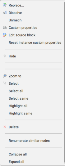 Collapse all: collapses the main component and all components and subcomponents.