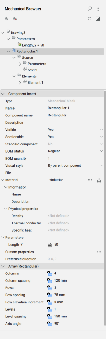 Component array is an associative array made of a parametric component. Component arrays have a special representation in the Mechanical Browser panel.