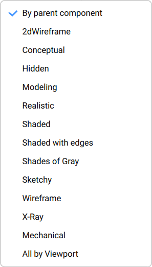 Visual Style: displays the Visual Style menu. Visual Styles that are saved in the current drawing are available.