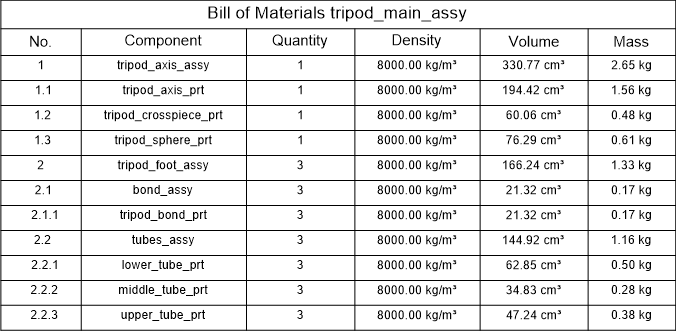 By default, the BOM table contains the Number, Name and Quantity columns, Thumbnails, or the desired configuration, previously defined in a template .bom file stored in BOMTEMPLATE system variable.