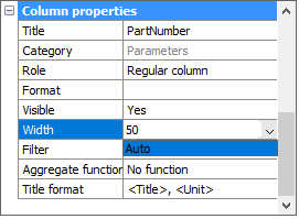 To restore the automatic width mode, select the column in the BOM manager panel and select Auto in the drop-down list for the Width property.