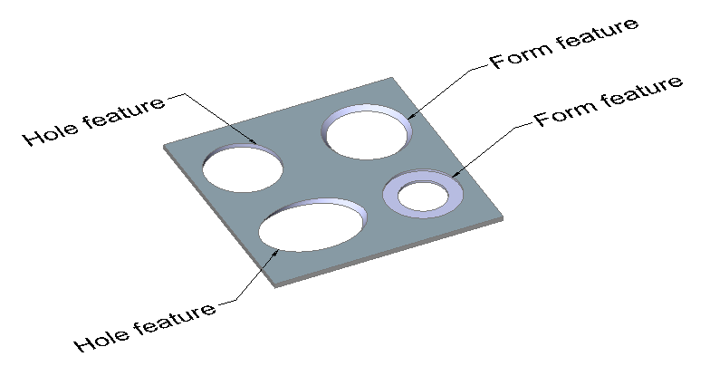 - If the hole thickness face consists of 2 different regions, it is a form feature.