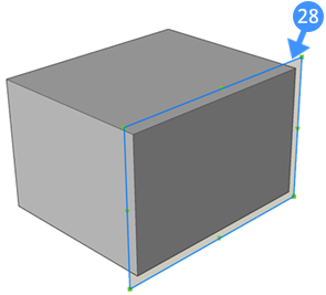 The following illustrations show the created surface (29) by extruding the selected 2D entity (28) in the drawing: