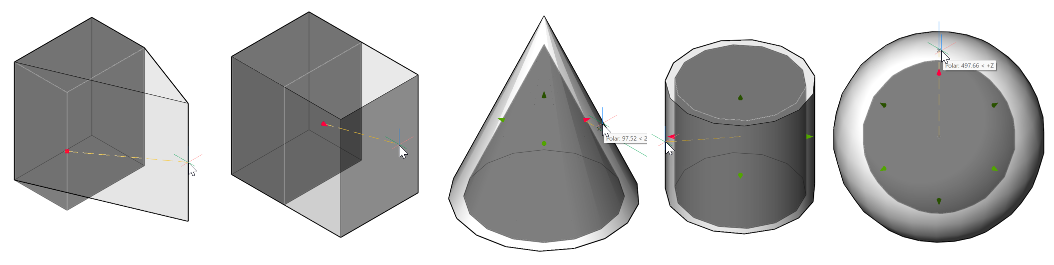 - DMDEFORMPOINT command: Move a point on a face in any direction in 3D space.