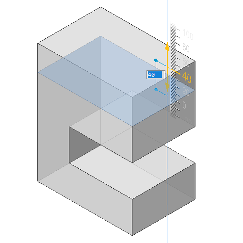 ) in the Model tab of the Quad.The selected face moves with the cursor and a dynamic dimension field displays the relative distance along with a ruler.