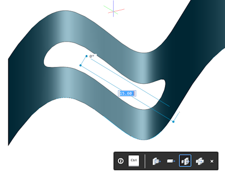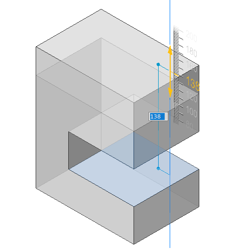 - (Option) repeatedly hit the Tab key to see the distance with respect to an internal face, parallel to the selected face (left) or the bottom face (right).