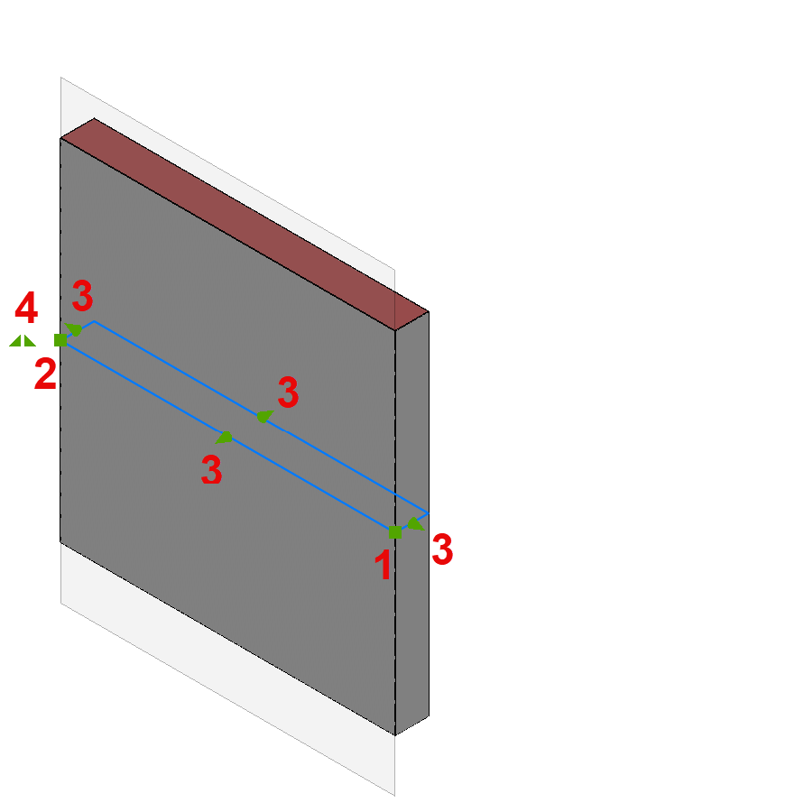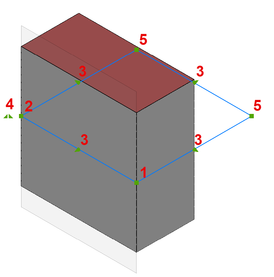 ) = through point: redefines the through point of the section plane.The section plane boundary is stretched and rotated around the origin point (1).