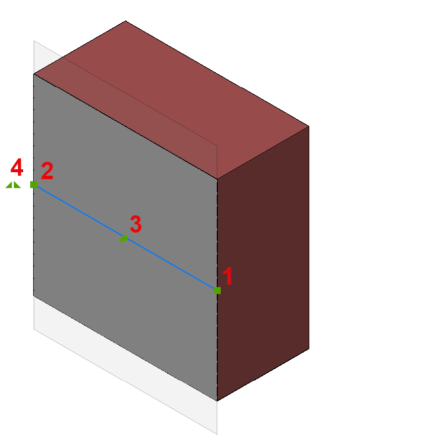 ) = through point: redefines the through point of the section plane.The section plane volume is stretched and rotated around the origin point (1).