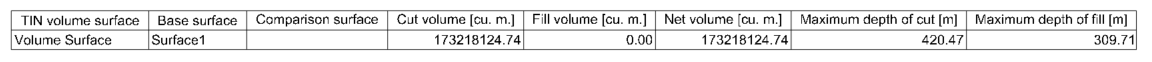 A TIN volume surface provides an exact difference between the base and comparison surfaces. Therefore, the Z-value of any point in the volume surface is precisely the difference between the Z of the comparison surface at that point and the base surface at that point. A TIN Volume Surface is drawn as a custom entity with additional fill/cut volume properties.