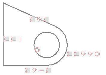 - An icon displays next to the entity, to indicate the applied constraint. If multiple geometric constraints are applied, the icons are joined in a constraint bar.