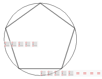 By applying coincident constraints between the pentagon vertices and the circle, and equal constraints between one side and the four other sides, the circle radius defines the size of the pentagon.