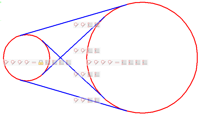 Coincident constraints between the endpoints of the tangent lines and the circles prevent the tangent lines to extend beyond the tangent points.