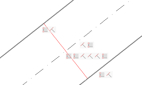 The bold lines and the dash-dot line have a perpendicular constraint with the red line. As a result the dash-dot line always lies centered between the two bold lines.