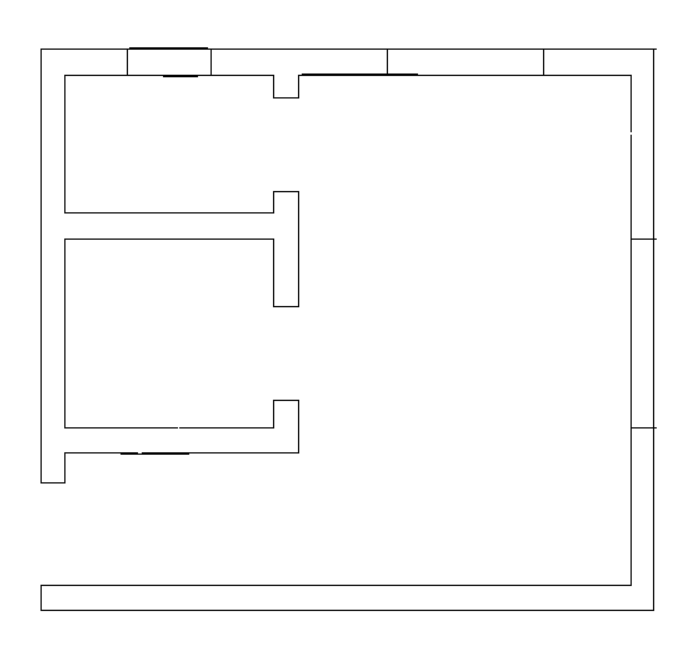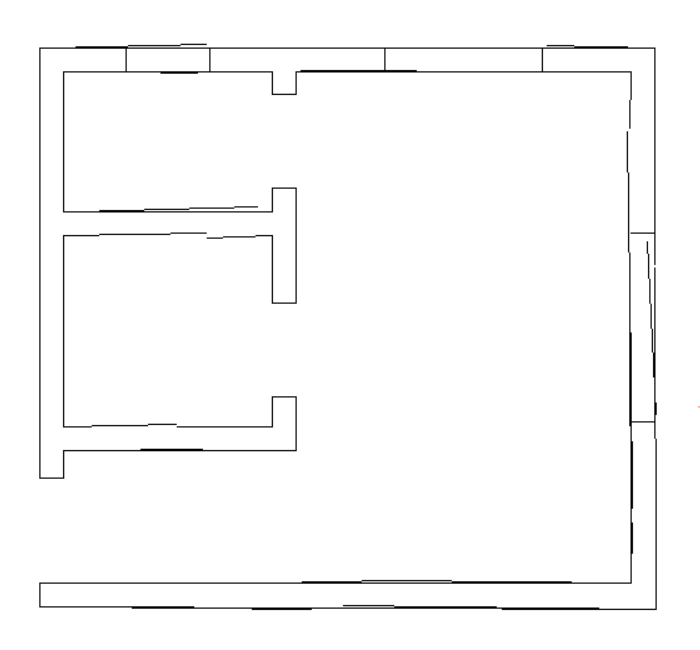 Here is a simple room plan as it was exported from a 3D and imported in 2D drawing. Due to incompatibilities of the software programs involved in the export / import operations, there are some lines that are angled, broken or overlapped.