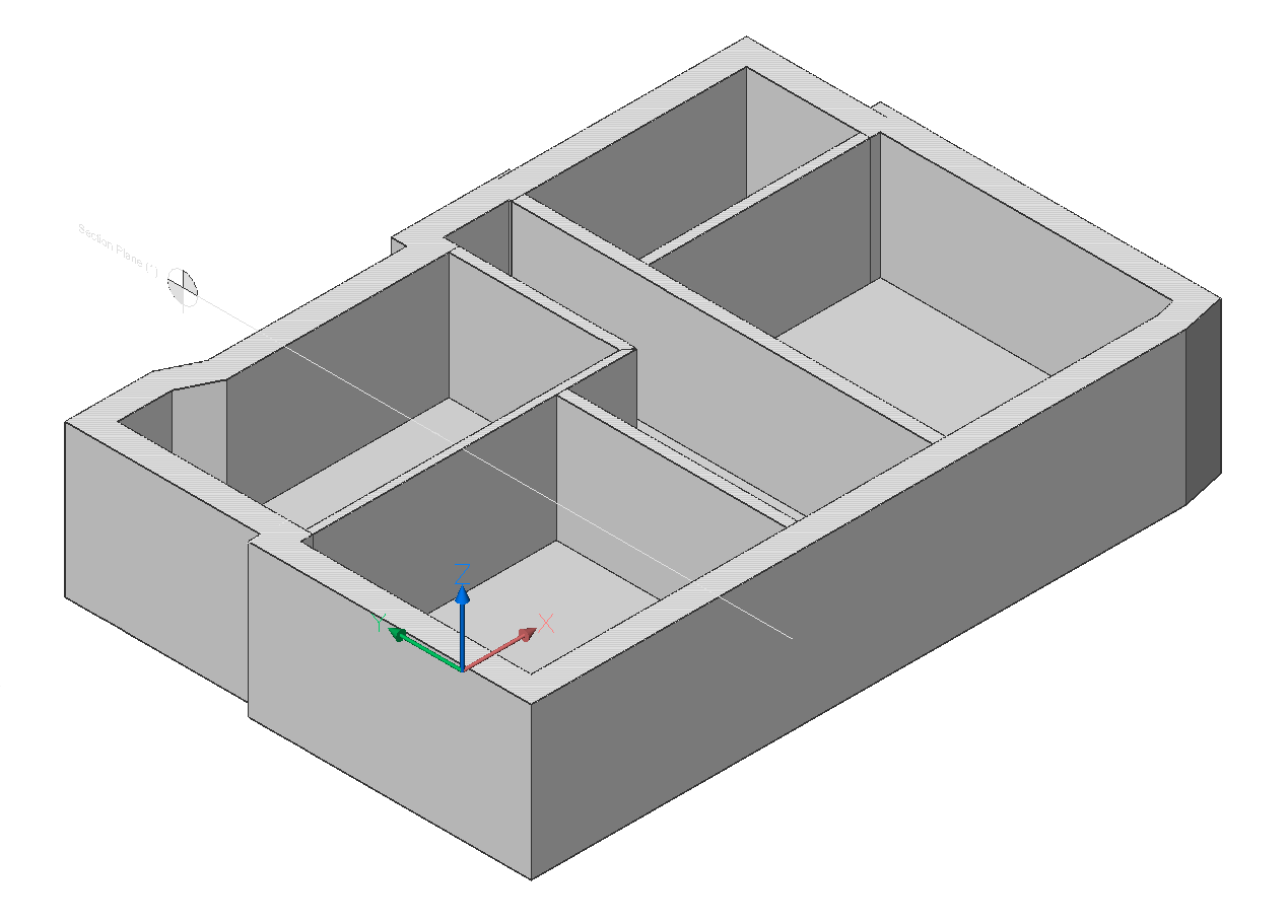 - Use the BIMSECTION command to create a horizontal section plane that displays the internal walls.