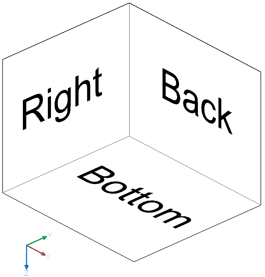 Changes the UCS so that the XY-plane is parallel to the bottom plane of the drawing and the Z-axis points away from it.