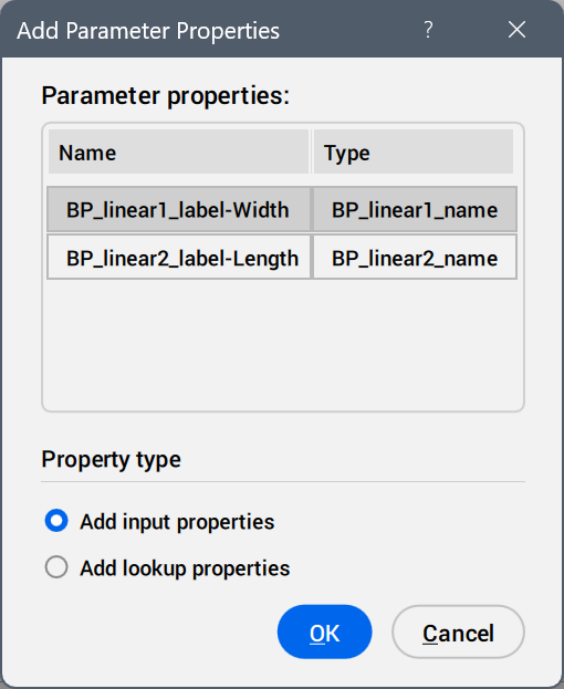 Select the parameters to be added as property columns.