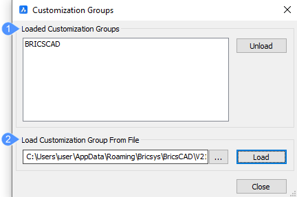 The Customizations Groups dialog box allows you to load or to unload a partial CUI file.