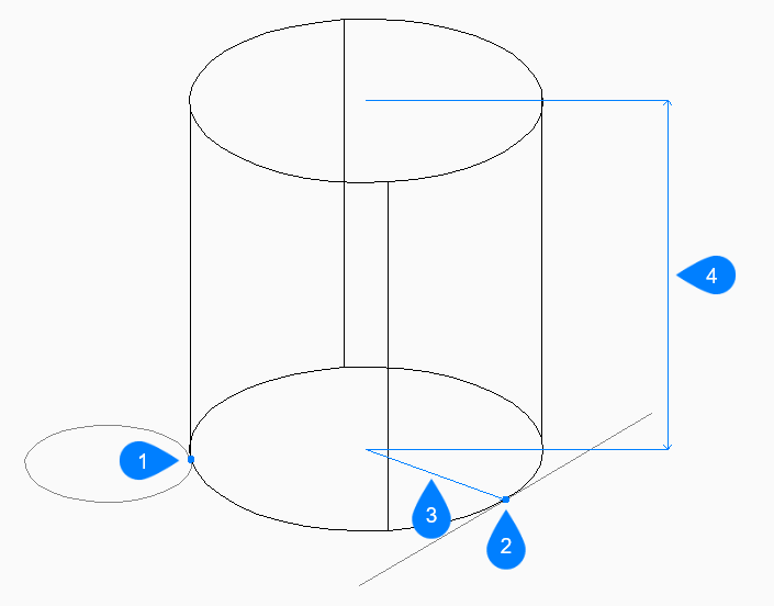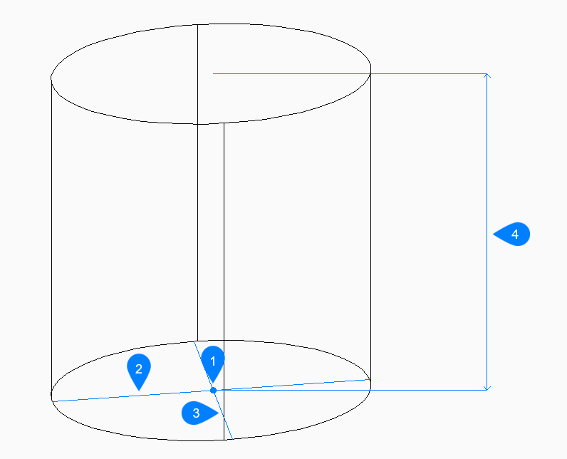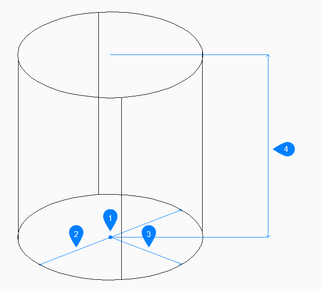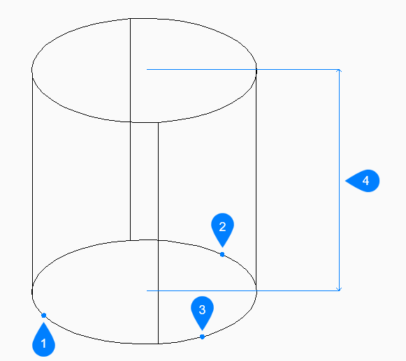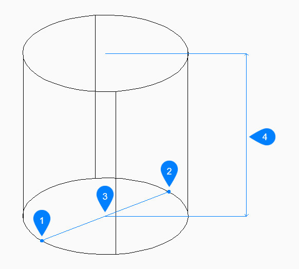 - Specifies the height of the cylinder as the distance between any two points.