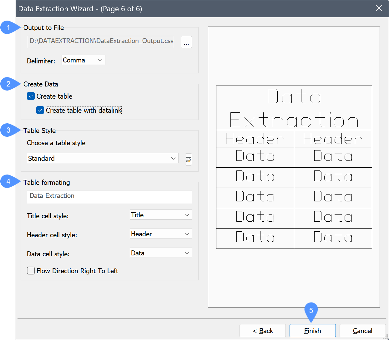 Data Extraction Wizard - (Page 5 of 6) dialog box