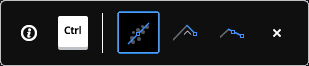 Once the first segment is created, the Hotkey Assistant widget options become available to modify the behavior setting. Press the Ctrl key to switch between the options Default fitting, Ortho override and Two-points override.