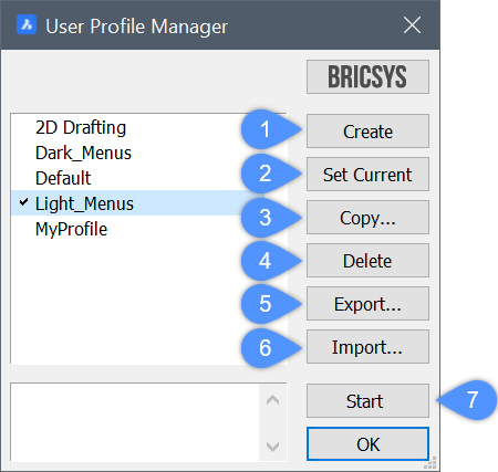 This option is only available when the command is launched when executing profilemanager_app.exe in the BricsCAD® installation folder. By default, the path is: C:\Program Files\Bricsys\BricsCAD V26 en_US.