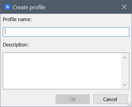 Allows you to create a new profile, using built-in default settings. The Create profile dialog box displays: