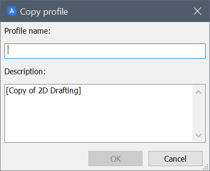 Creates a new profile as a copy of an existing profile. The Copy profile dialog box displays: