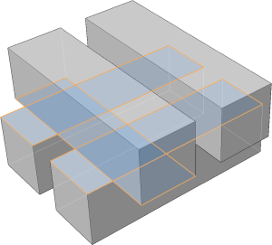 Select a face. The program selects all other faces that are connected to the selected face, shown outlined.