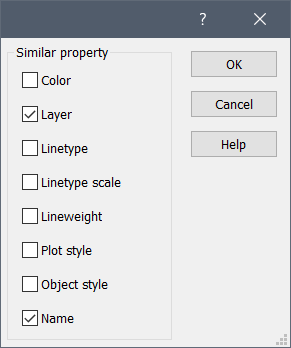 Note: The value of the SELECTSIMILARMODE system variable will be updated according to the selected properties in this dialog box.
