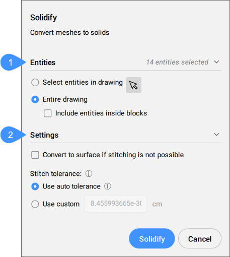 - The SOLIDIFY command is integrated in the DWGHEALTH command's Repair 3D Imports routine. You can also add it to your own custom DWGHEALTH routine (see DWGHEALTH command article).