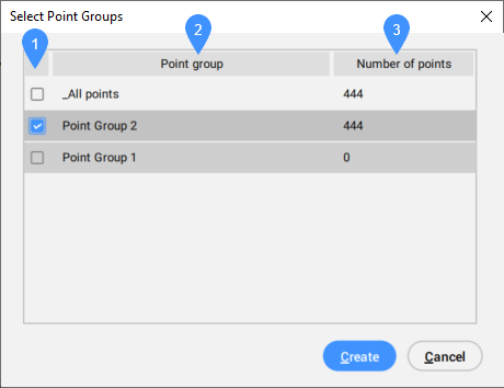 - Creates a TIN Surface from a selected Point Groups.