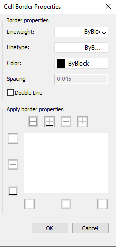 To open the Cell Border Properties dialog box, run the TABLEMOD command and select the Set Border Style button (