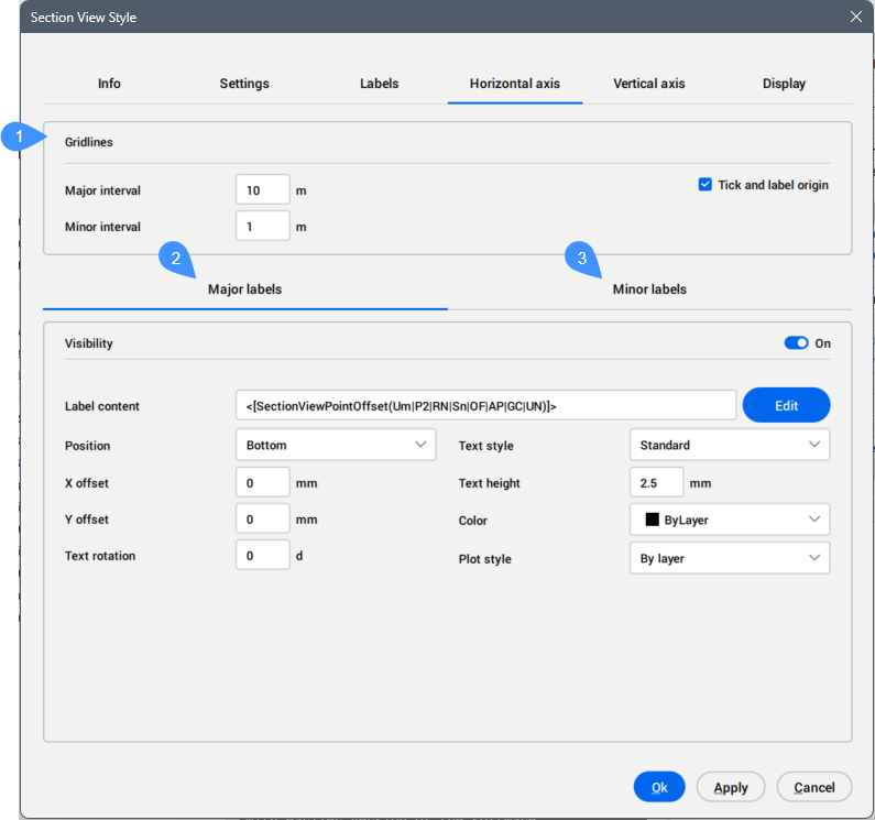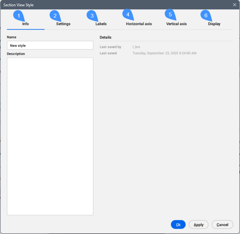 The Section View Style dialog box allows you to define how a section view is displayed in a drawing.