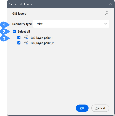 Opens via: Export To GIS dialog box > Entities section > Select GIS layers button