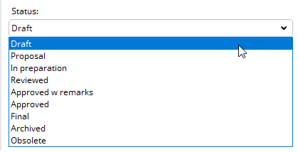 (6) Folder name At the top of the panel you see the folder you are in. You can go back to the overview of by clicking on the back arrow. (7) Add a new file Opens the Add new document dialog box to add a new file to the folder. Choose a file status from the drop-down list and type a description.