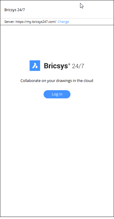 Click the Change button to open the Settings dialog box at the CLOUDSERVER system variable to specify another address of the Bricsys 24/7 server. For other certain environments, like https://pellikaan.bricsys247.com/, that do not support SSO at this moment, the Log in with your Bricsys account section on the Bricsys website can be different. For Log in follow the steps:
