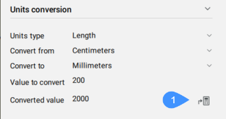 Performs units conversions. You can choose from the drop-down lists the parameters.