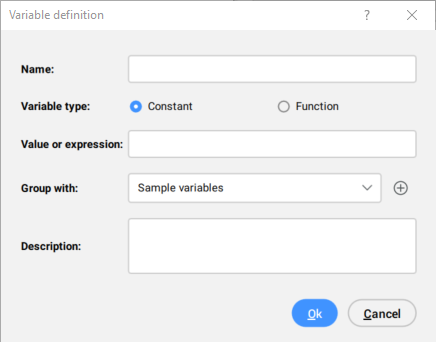 - Opens the Variable definition dialog box that allows you to define a new variable.