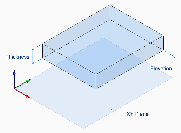 The elevation (Z-axis) for new entities, relative to the current UCS.