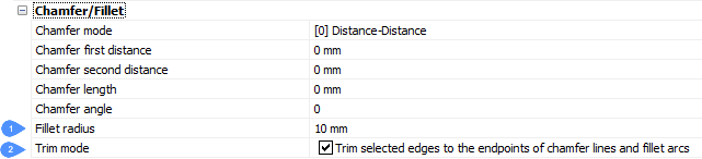 - Muestra la sección Chaflán/Empalme en el cuadro de diálogo Configuración :