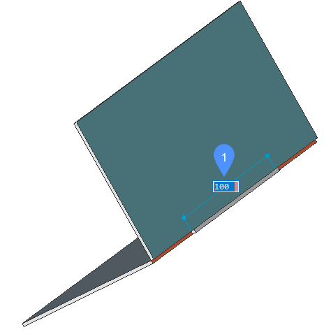 - Define la longitud de la pestaña (1). La pestaña se coloca simétricamente con respecto al punto central.