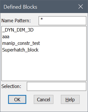 Abre el cuadro de diálogo Bloques definidos que enumera todos los bloques insertados en el dibujo actual.