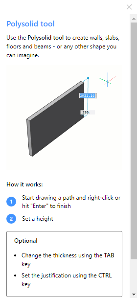 Cuando inicia ciertos comandos, el panel muestra una animación corta e información adicional sobre el uso del comando.
