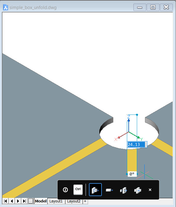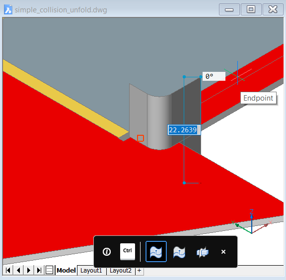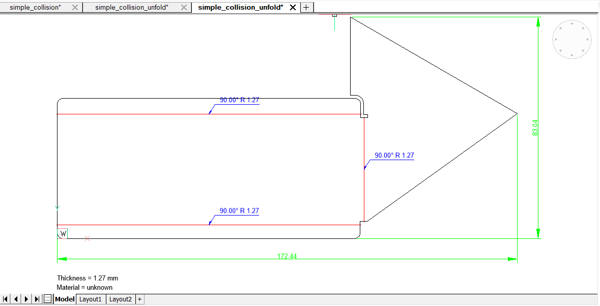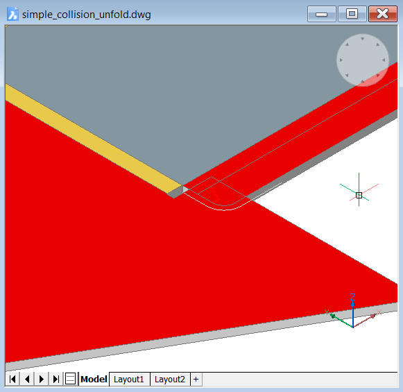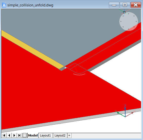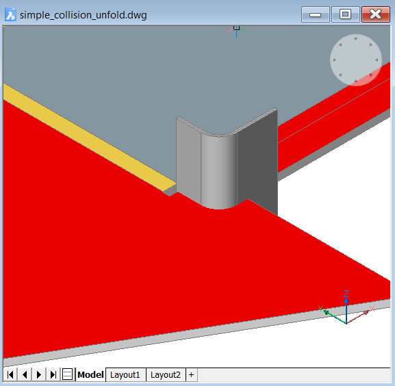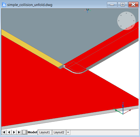 Dans cet exemple, nous ne savons pas quelles modifications appliquer au modèle 3D pour éviter la collision lorsqu'elle est aplanie. Nous allons retravailler le modèle avec dépliage associatif.