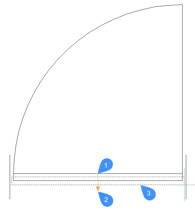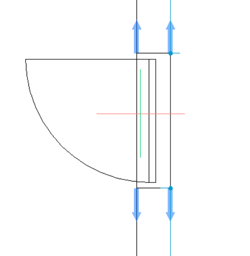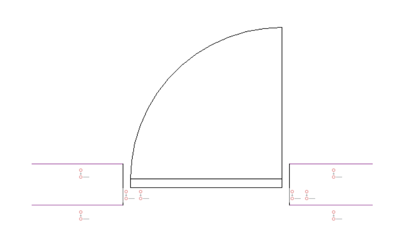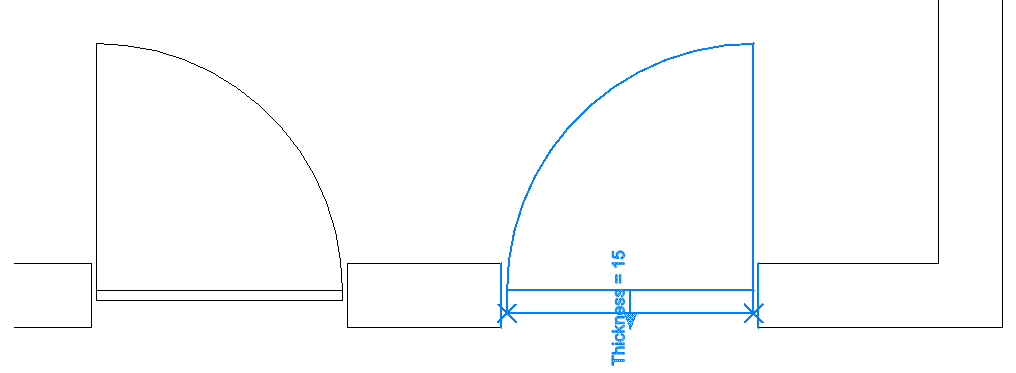 Pour rendre le bloc de porte plus flexible/approximatif, les courbes de référence sont paramétrées et la géométrie environnante les contraint. Par conséquent, le bloc paramétrique s'accrochera à des murs d'épaisseurs différentes dans le dessin cible.